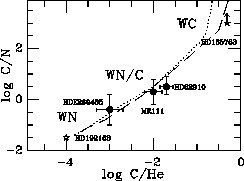 of the WN/C stars (filled-in circles) with normal WN (HD192163)